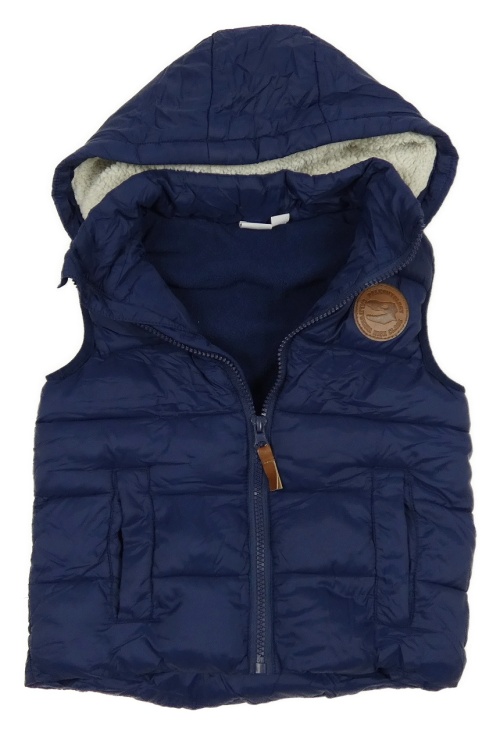 Tmavomodrá šušťáková prešívaná zateplená vesta s kapucňou Manguun