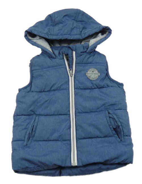 Modro/tmavomodrá melírovaná prešívaná šušťáková zateplená vesta s nášivkou a kapucňou Rebel