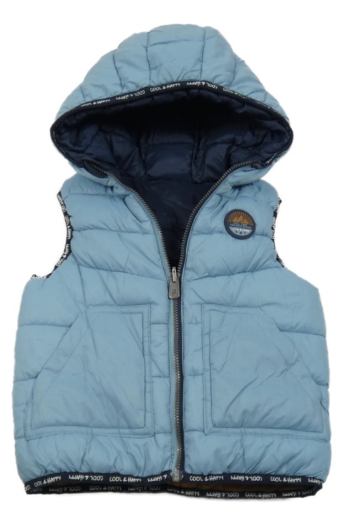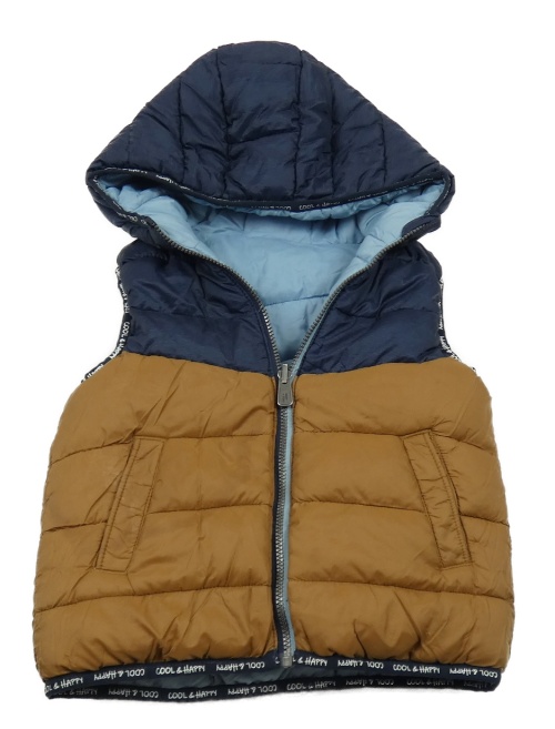 Hnedo-tmavomodrá šušťáková zateplená obojstranná vesta s kapucňou C&A
