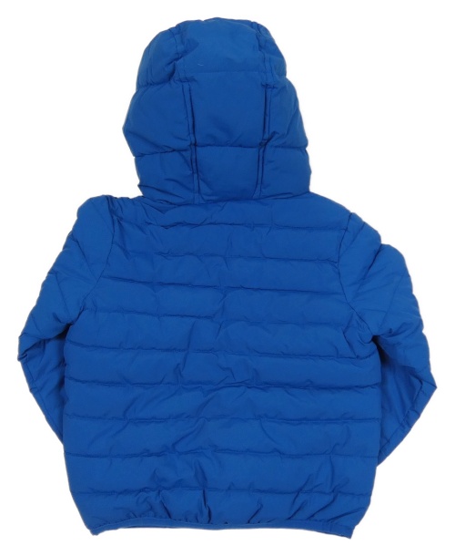 Modrá šušťáková prešívaná ľahká zateplená bunda s nápisom a kapucňou
