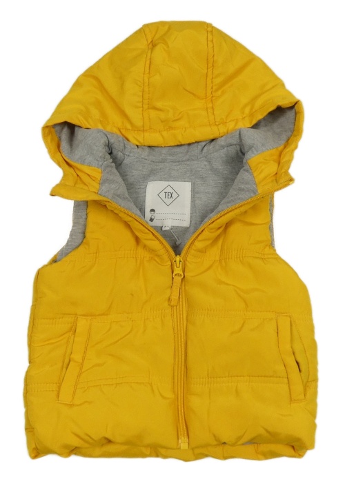 Žltá šušťáková zateplená vesta s kapucňou
