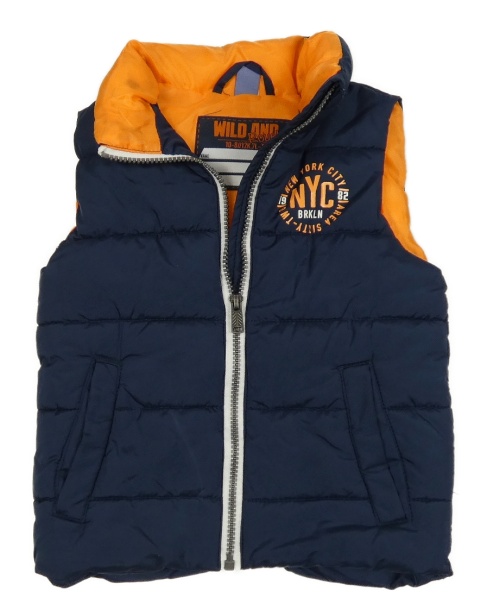 Tmavomodrá šušťáková prešívaná zateplená vesta s nápisom Dopodopo