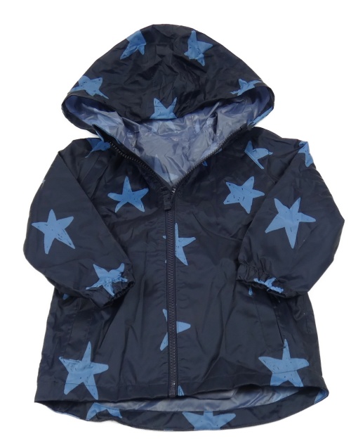 Tmavomodrá šušťáková jarná bunda s hviezdami a kapucňou F&F