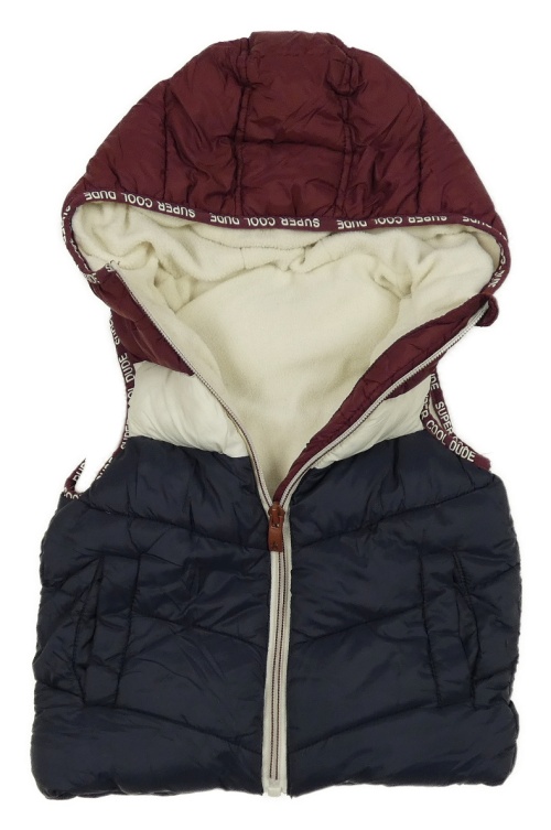 Tmavomodro-vínovová šušťáková prešívaná zateplená vesta s kapuíc Dunnes