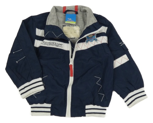 Tmavomodro-biela šušťáková jarná bunda s pirátem Topolino
