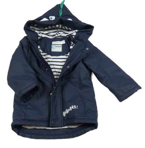 Tmavomodrý nepromokavý jarný zateplený kabát s kapucí - dinosaurus Orchestra