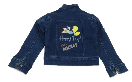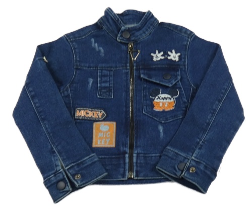 Tmavomodrá rifľová bunda s nášivkami Mickey