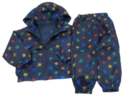 2Set - Tmavomodrá šušťáková jarná bunda s farebnými hviezdičkami a kapucí + nohavice Tu