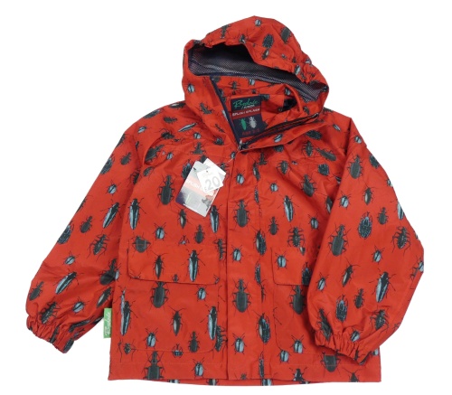 Nové - červená šušťáková jarná bunda s brouky a kapucňou Rydate