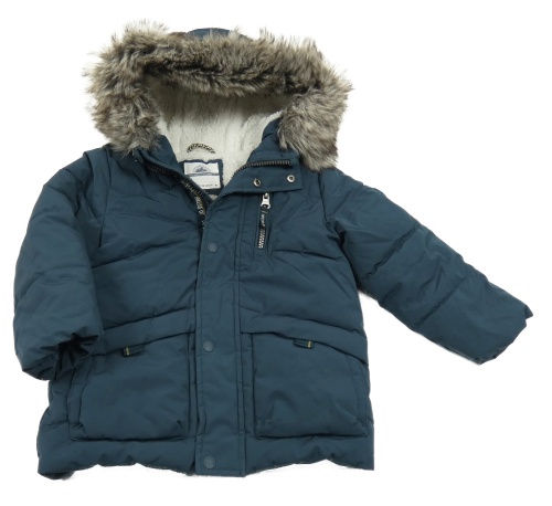 Tmavomodrá šušťáková zimná bunda s kožešinou a kapucňou C&A