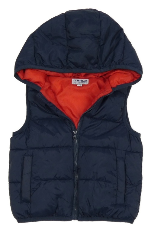 Tmavomodrá šušťáková zateplená vesta s kapucňou