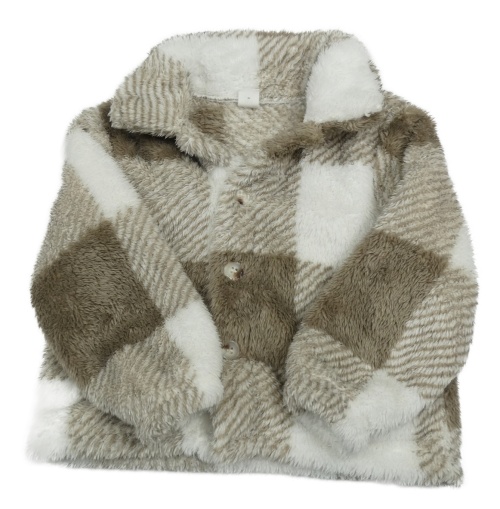 Hnedo-biela kockovaná chlpatá bunda s golierikom SHEIN