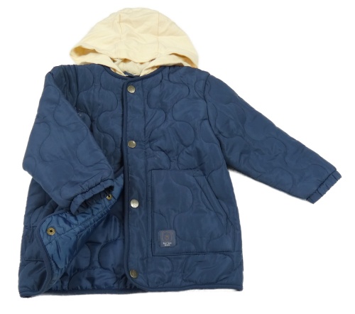 • Tmavomodrá prešívaná šušťáková jarná zateplená bunda s medvedíkom a kapucňou so cute