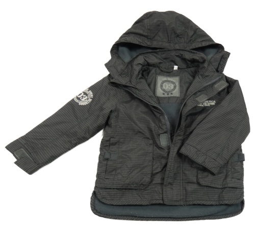 Čierno-sivá kockovaná šušťáková zateplená bunda s nápisom a kapucňou C&A