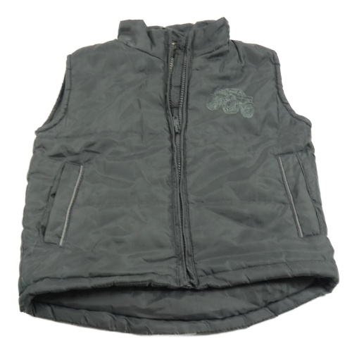 Tmavosivá šušťáková zateplená vesta s monster truckem