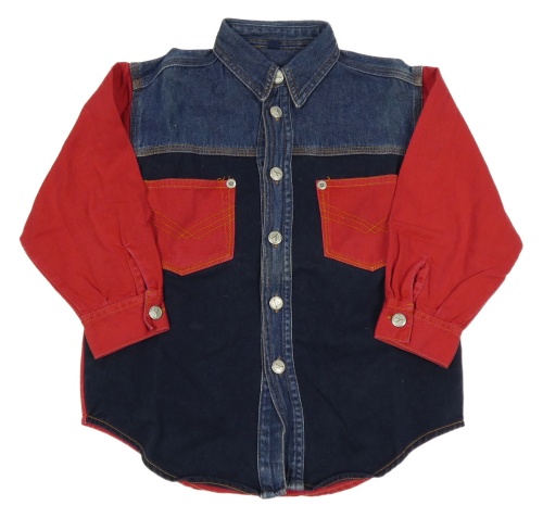 Tmavomodro-červená rifľová bunda