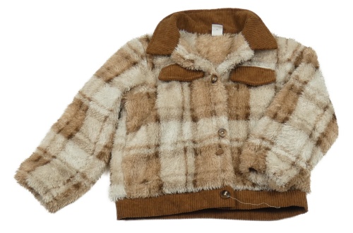 Béžovo-hnedá kockovaná košeľová plyšová bunda Shein