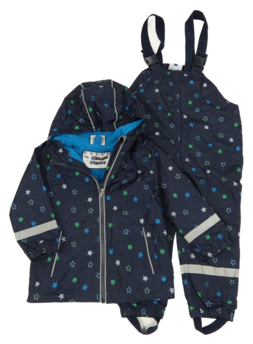 • 2Set - Tmavomodrá šušťáková jarná bunda s hviezdičkami a kapucí + nepromokavé na traké podšité nohavice Topolino