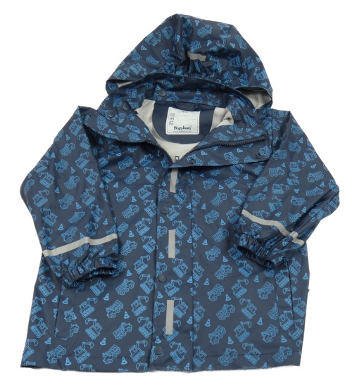 Tmavomodrá nepromokavá bunda so stavebními stroji a kapucňou PlayShoes