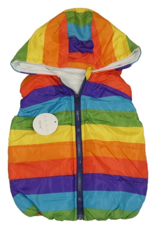 Nové - Farebná pruhovaná šušťáková zateplená vesta s kapucňou