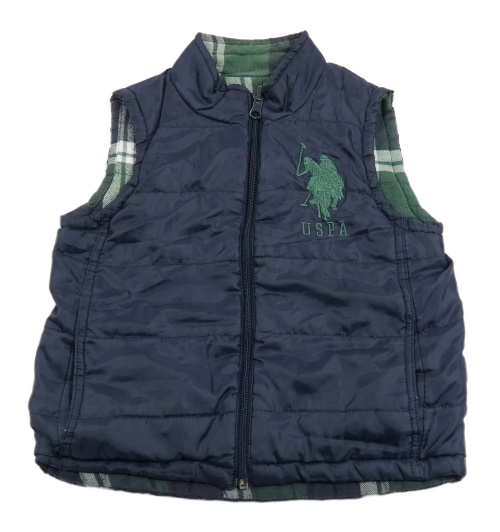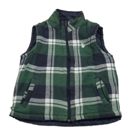 Zeleno-bielo-tmavomodrá kockovaná flanelová obojstranná zateplená vesta U.S POLLO ASSN.