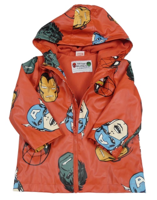 Červená nepromokavá jarná bunda s Marvel a kapucňou Marvel