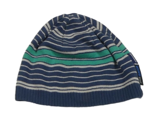 Tmavomodro-svetlošedá -zelená pruhovaná pletená čapica Brendon