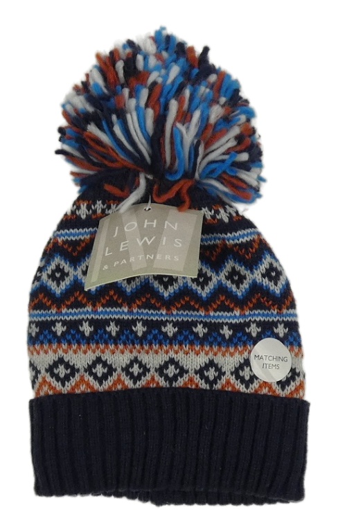 Nové - Tmavomodro-farebná vzorovaná pletená pošitá čapica s brmbolcom John Lewis