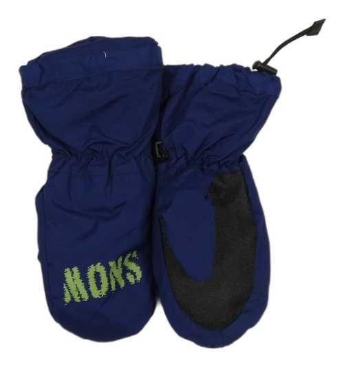 Tmavomodré šusťákové zimní palcové rukavice s nápisom