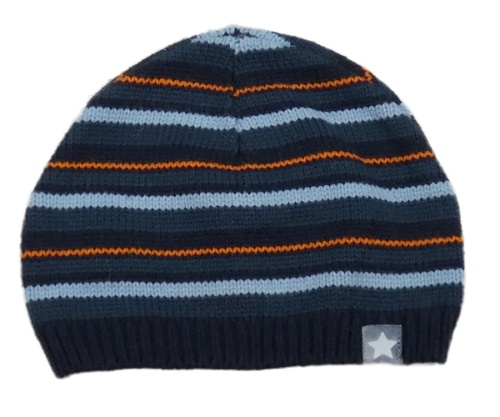 Tmavomodro-modro-oranžová pruhovaná čapica