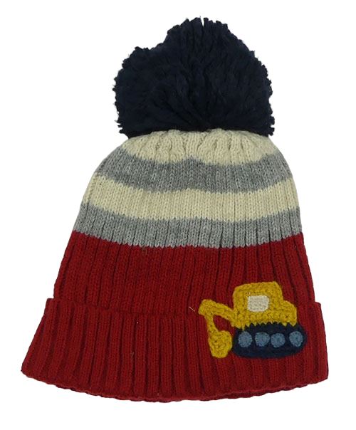 Červeno-béžovo-sivá zateplená čapica s bágrom a brmbolcom Next