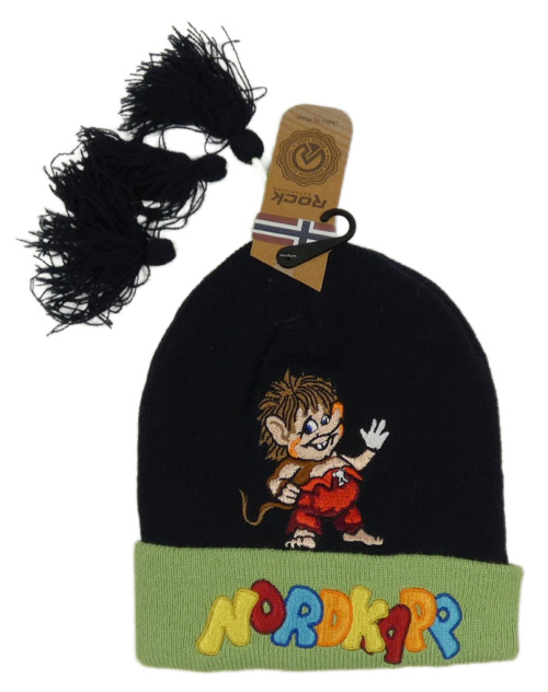 Nové - Tmavomodro-zelená čapica so škriatkom a strapcemi