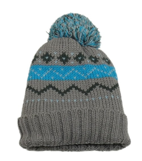 Sivo-modrá vzorovaná čapica s brmbolcom