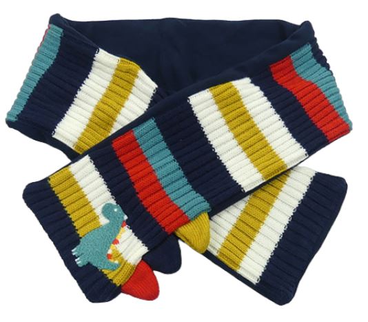 Tmavomodro-farebná pruhovaná fleecová/pletená šál s dinem