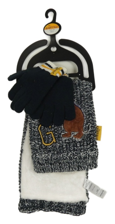 Nové - 2set- Tmavomodrá melírovaná šál s Gruffalem + prstové rukavice Tu