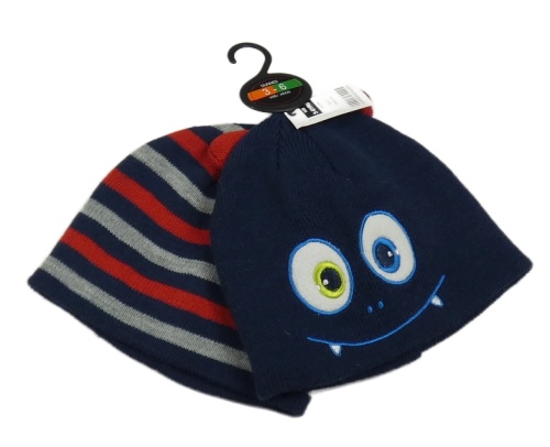 Nové - 2x - Farebná pruhovaná + tmavomodrá pletená čapica s príšerkou St. Bernard