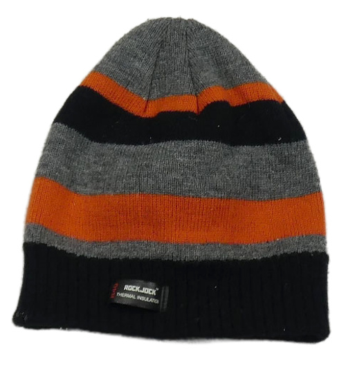 Sivo-oranžovo-čierna pruhovaná pletená podšitá čapica