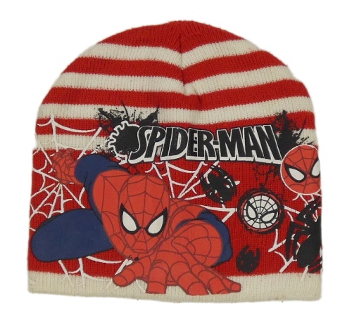 Červeno-biela pruhovaná pletená čapica so Spider-manem MARVEL