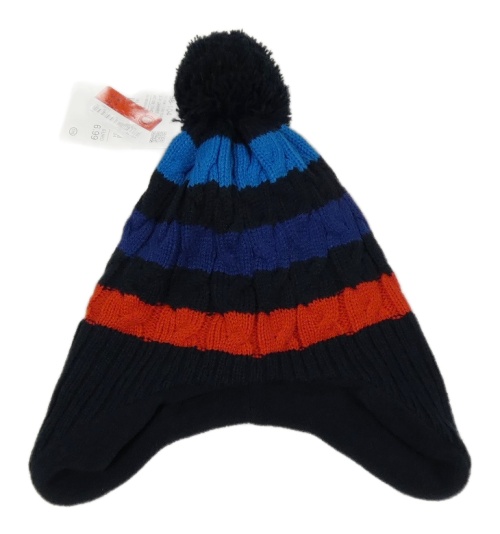 Nové - Tmavomodro-modro-červená pruhovaná čapica s brmbolcom C&A