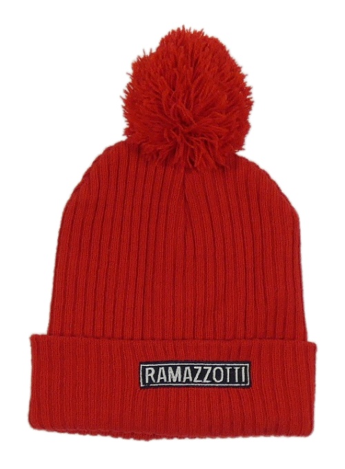 Červená rebrovaná pletená čapica s nápisom