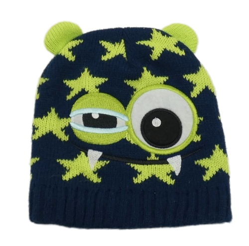 Petrolejovo-limetková pletená čapica s príšerkou a hviezdičkami a uškami