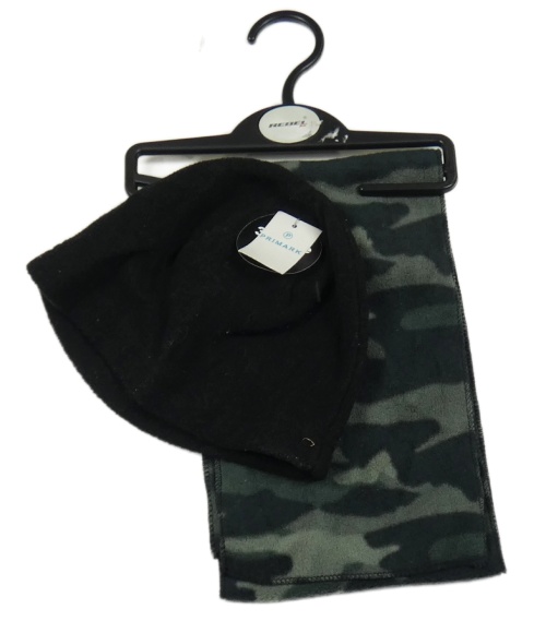 Nové - 2set - Čierna fleecová čepice + army šál Primark