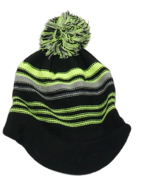 Čierno-zelená pletená čapica s kšiltem a brmbolcom