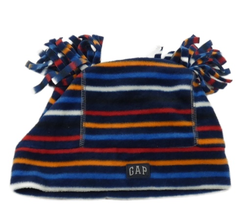 Nové - tmavomodro-farebná pruhovaná fleecová čapica s strapcemi GAP