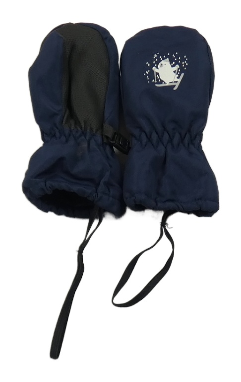 Tmavomodré šusťákové zimní palcové rukavice s medvedíkom