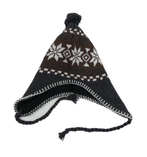 Sivo-hnedá pletená vzorovaná čapica s brmbolcom