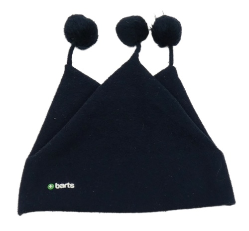 Tmavomodrá fleecová čapica s bambulemi