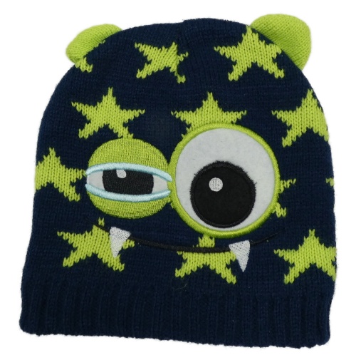 Tmavopetrolejovo-limetková pletená čapica s hvězdičkami - príšerkami