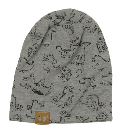 Sivá melírovaná bavlnená čapica s dinosaurami