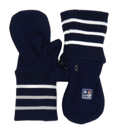 Tmavomodré fleecovo/pletené palcové rukavice s nášivkou a pruhmi Jojo Maman Bébé